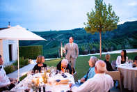 Il Ricevimento di Nozze: Dopo il giro degli aperitivi il gruppo è ritornato a Palas Cerequio a La Morra, dove la maggior parte degli ospiti soggiornava.
